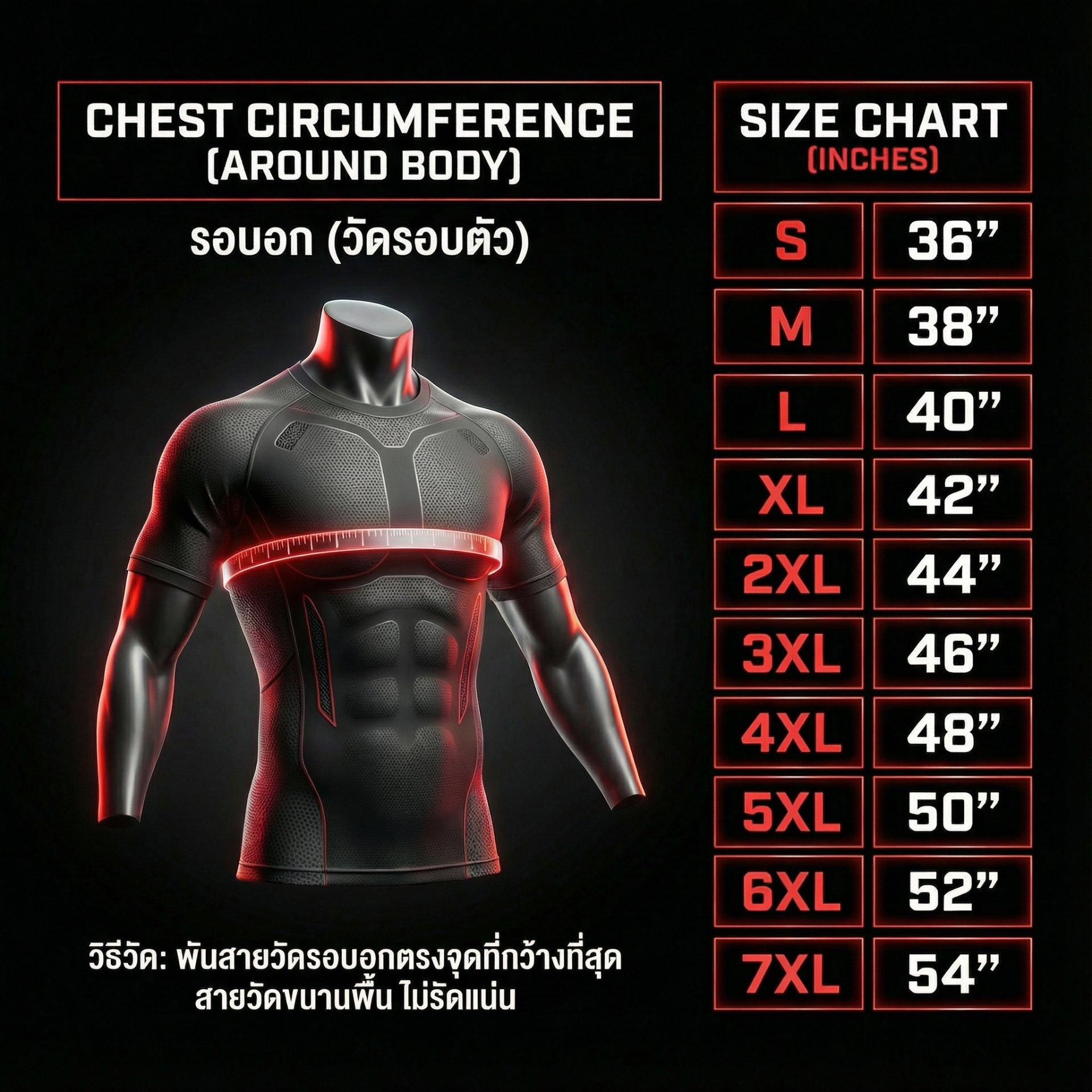 S 36" | M 38" | L 40" | XL 42" | 2XL 44" | 3XL 46" | 4XL 48" | 5XL 50" | 6XL 52" | 7XL 54"